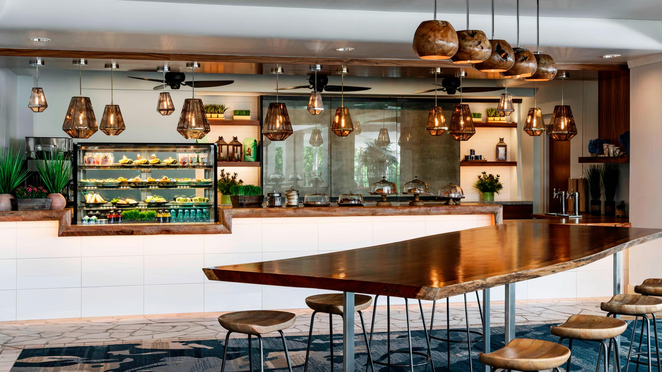 갓 내린 코나 커피, 차 또는 특별 음료와 달콤하고 짭짤한 아침 식사로 아침을 시작하고, 숨 막힐 듯한 바다 전망을 감상하세요. 로비 바로 옆에 위치한 이곳은 하루를 시작하기에 완벽한 장소입니다.